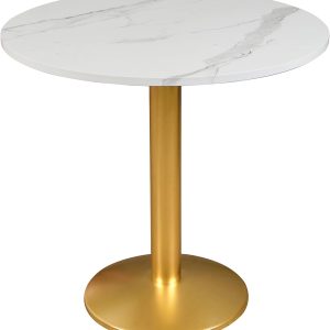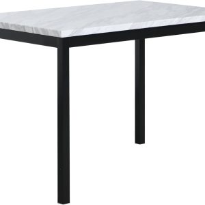 Metal Dining Table with Laminated Faux Marble Top, Off-White
