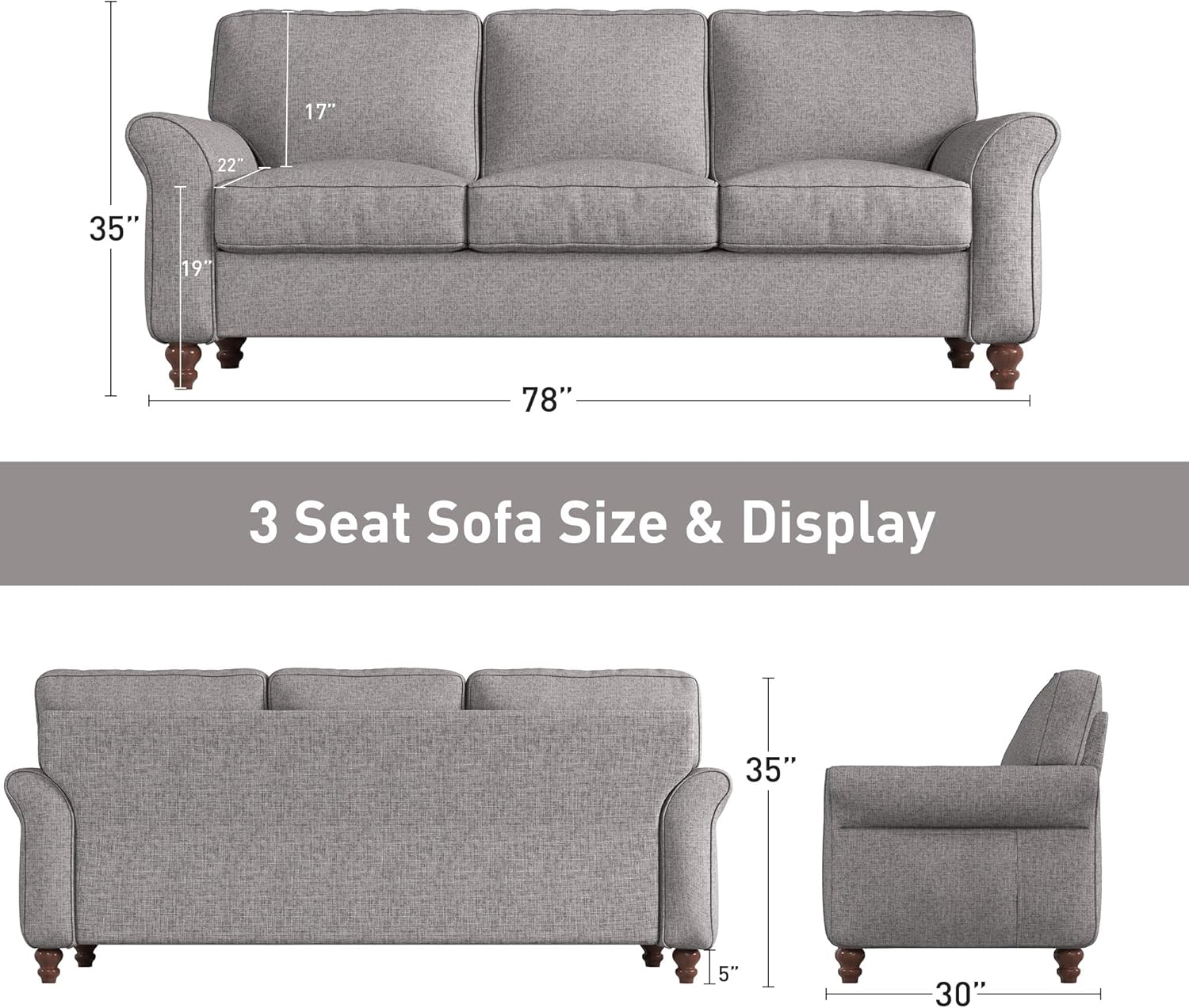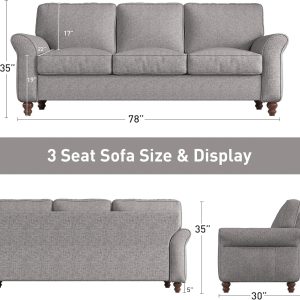 - Comfy Couch: Padded with high density sponge, this 3-seater ern sofa couch features comfy thick cushion and backrest that provide superior comfort and support, perfect for long hours of sitting, whether you’re working, relaxing, or entertaining guests in your living room, apartment, or office.