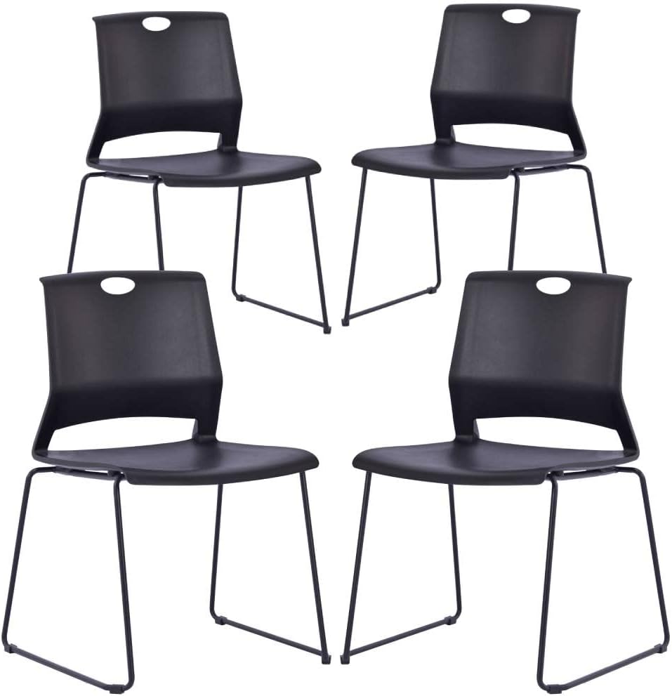 • Black Stacking Chairs Set of 4: These black waiting room chairs which constructed with integrated shell of seat and back is made by premium polypropylene, so that these reception chairs are wear-resistant and durable.Sled base with modern clean design has a load capacity of 300 pounds, stable and sturdy.