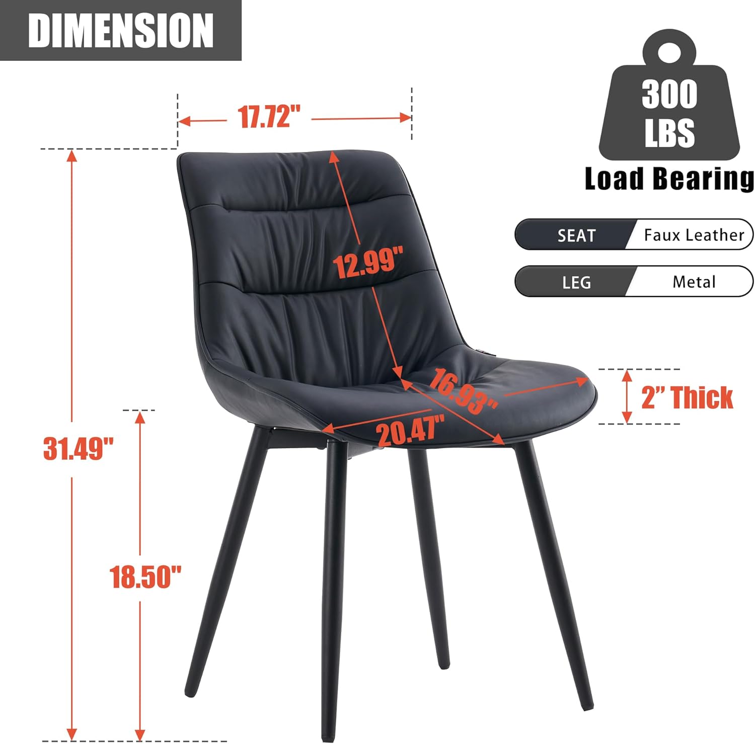 • 【Thick leather cushion】:These dining chairs have increased the thickness of the built-in sponge to 2 inches on the basis of using professional grade synthetic leather, giving you a feeling of being wrapped when sitting up and not rebounding after prolonged sitting
