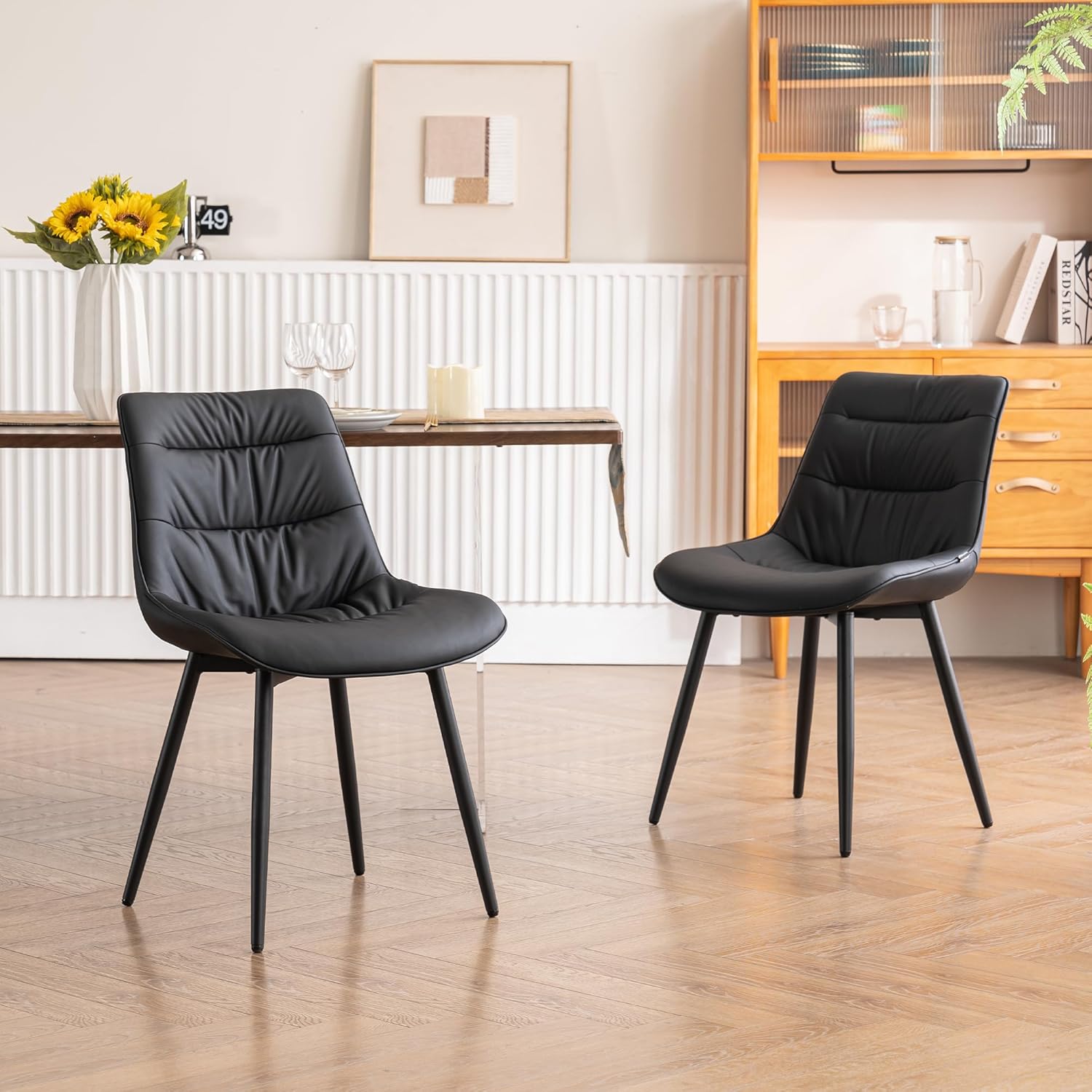• 【5 Year Warranty & Easy to Maintain】:These kitchen chairs are guaranteed for 5 years, please look to if you have any quality issues. Made of high-quality leather, sweat resistant and waterproof, the modern dining chairs are easy to clean with simple wipe