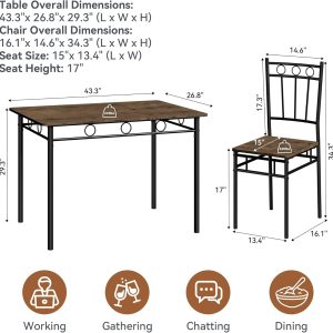 • 【Perfect for Families】: The dining table for four people consists of a rectangular dining table with dimensions of 43.3 “x 26.8” x 29.3 “(L x W x H) and four chairs with dimensions of 16.1”x 14.6”x 34.3” (L x W x H), which is suitable for small to medium-sized gatherings and family meals at home. Moreover, it can serve as a work table or a game table as per your requirements.