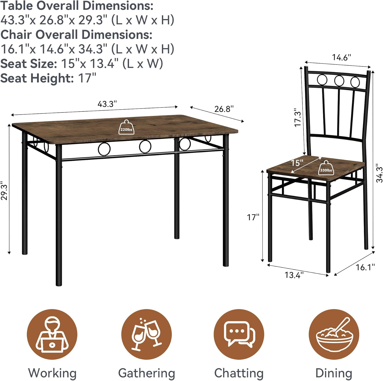 • 【Sturdy & Stable】 : The dining table and chairs are supported by metal legs and possess a robust structure. Thick planks and strong metal with a smooth finish ensure sufficient weight to offer you a reliable dining experience. The table has a load-bearing capacity of up to 220 pounds, and each chair can withstand a weight of up to 330 pounds.