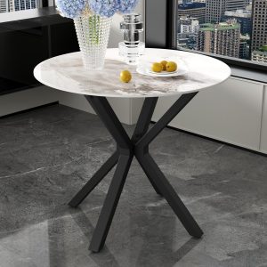 - Spacious Tabletop: Round faux marble tabletop creats a bright and spacious feel to your dining space. The thick edges are polished to give you a smooth touch and prevent accidental scratches