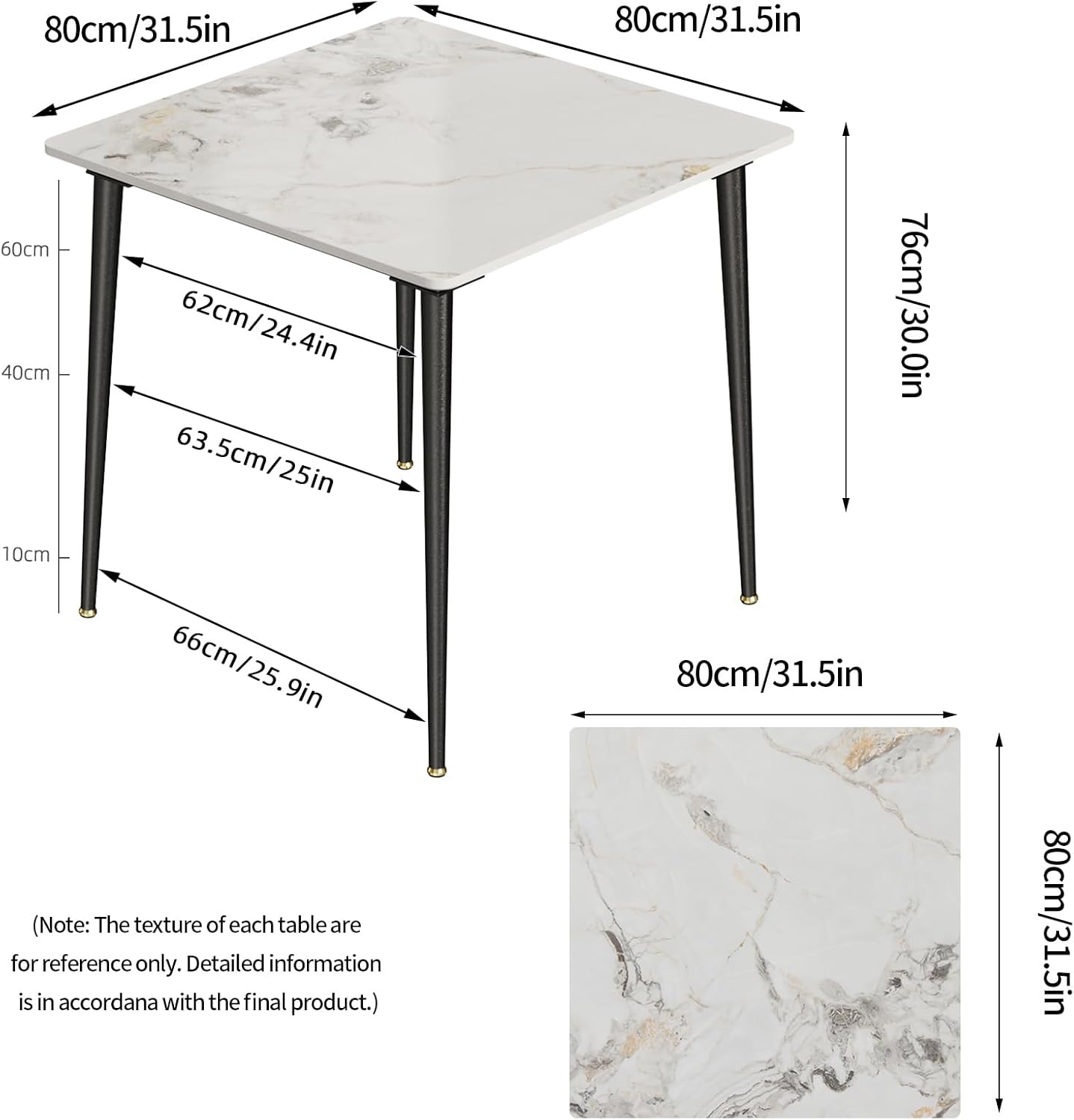 - Durable & After-sales service – The mohs hardness of sintered stone is second only to sapphire glass and diamond, so ordinary materials cannot leave imprints on the surface, the kitchen table will not deform or fade even after 20 years of use. With the latest paint technology, the paint of metal tables legs will not fall off for 10-15 years. We back all tables with a 2 year warranty. Any product problem, please feel free to contact us by email, we will solve it within 24 hours.