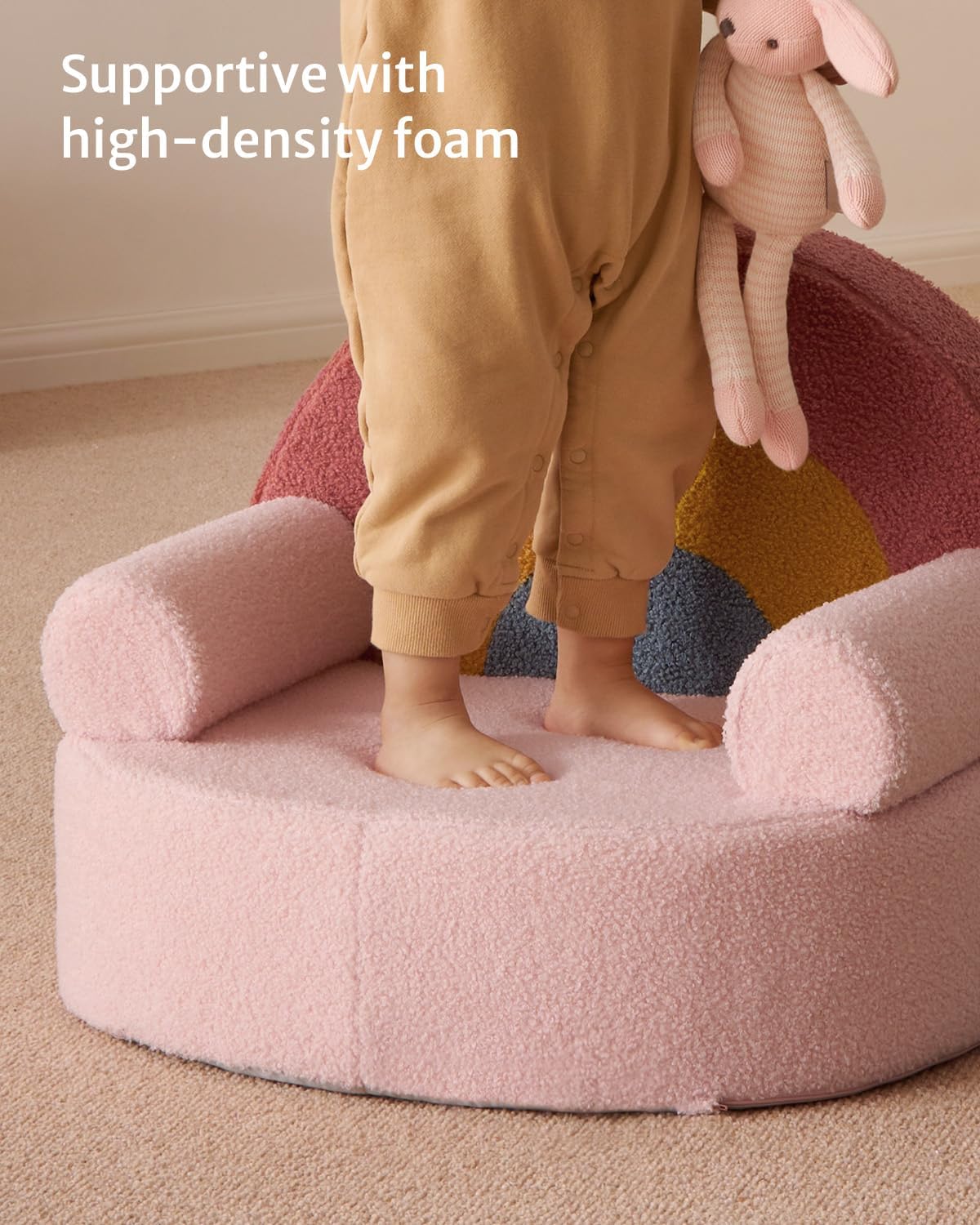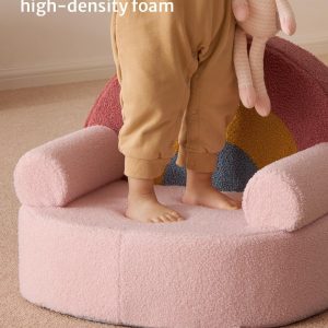 Toddler Chair Comfy, Foam Kids Chair with Soft Teddy Plush, Toddler Reading Armchair with Cute Rainbow Designs- Blush Pink